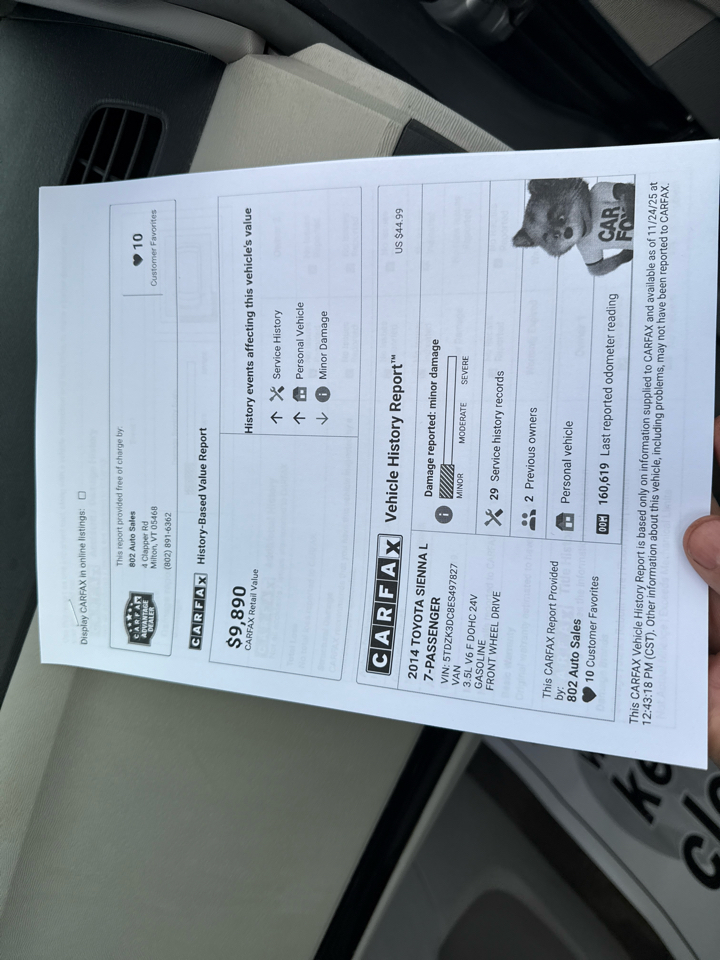 Message: Thought you might be interested in this 2014 Toyota Sienna.